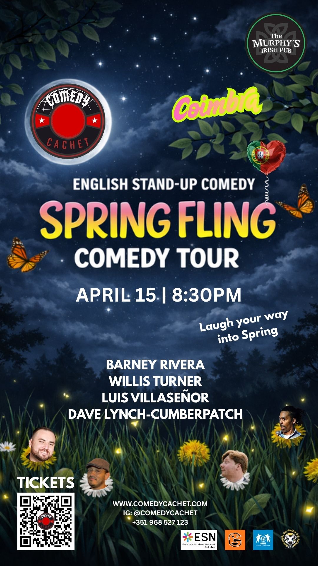 The Spring Fling Comedy Tour is hitting the road from April 8–18, bringing a fresh burst of laughter to 8 cities across Portugal. Produced by Comedy Cachet, this limited-run tour delivers a high-energy lineup of comedians ready to shake off the winter blues and kick off the season with unforgettable stand-up.